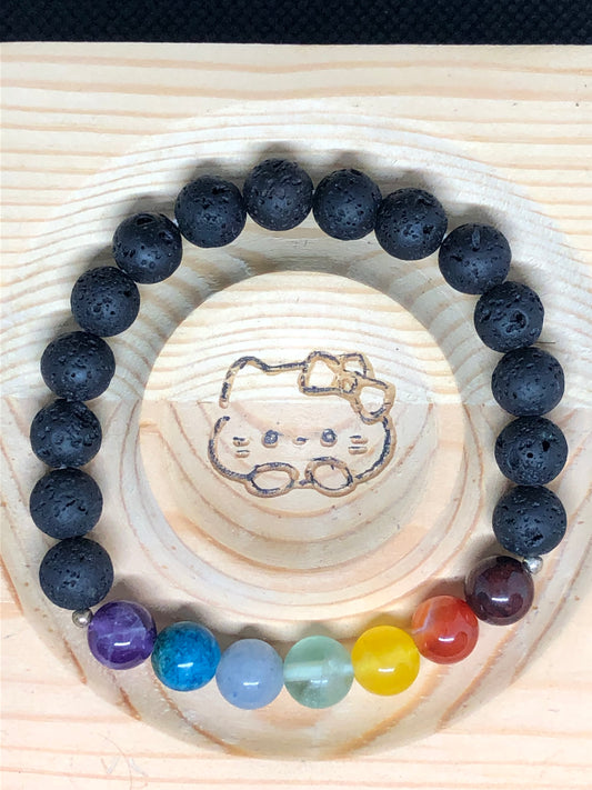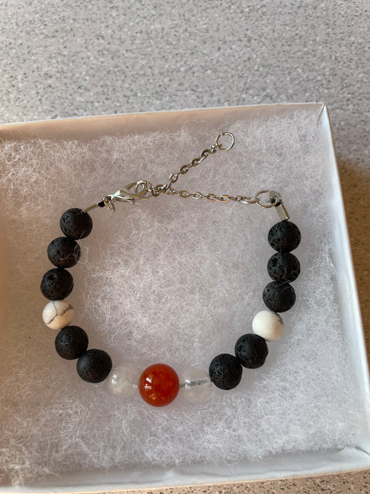 Bracelet howlite, quartz claire, cornaline et pierre de lave