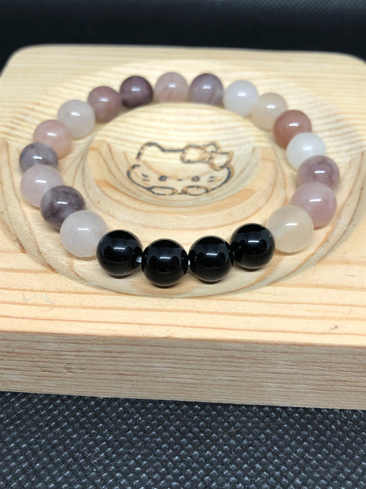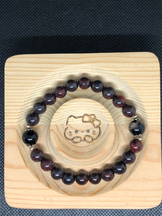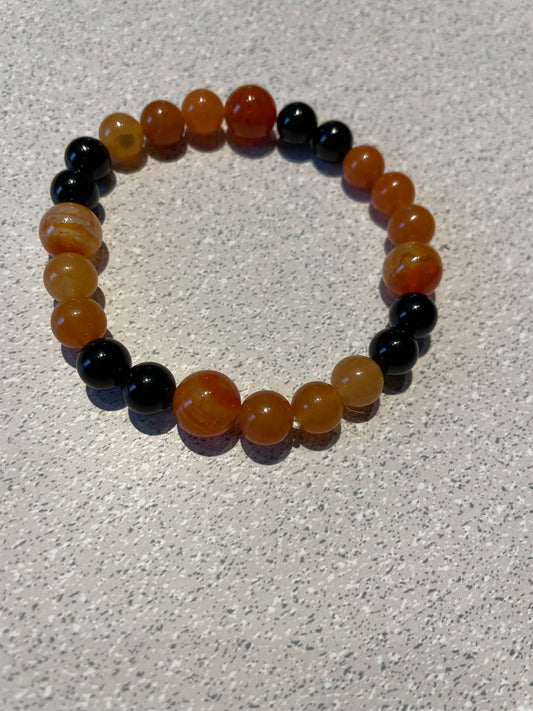 Bracelet Cornaline et Obsidienne (perles de 8mm,10mm)