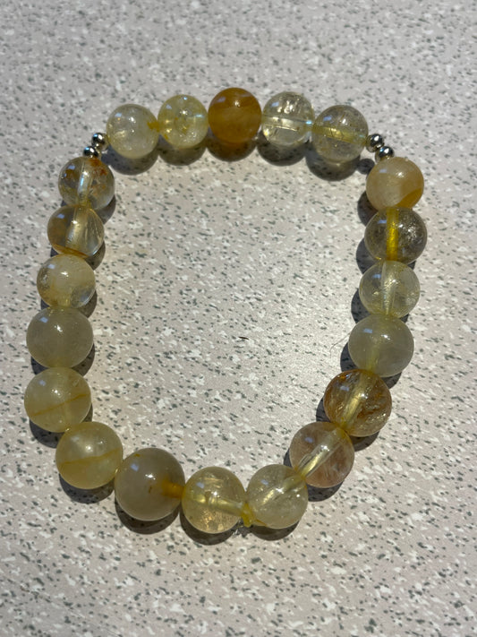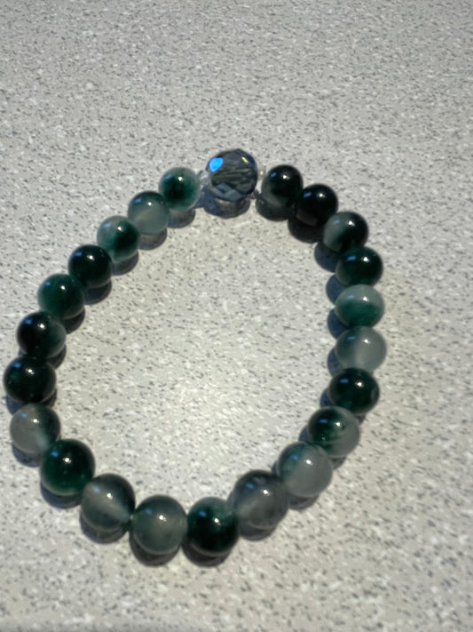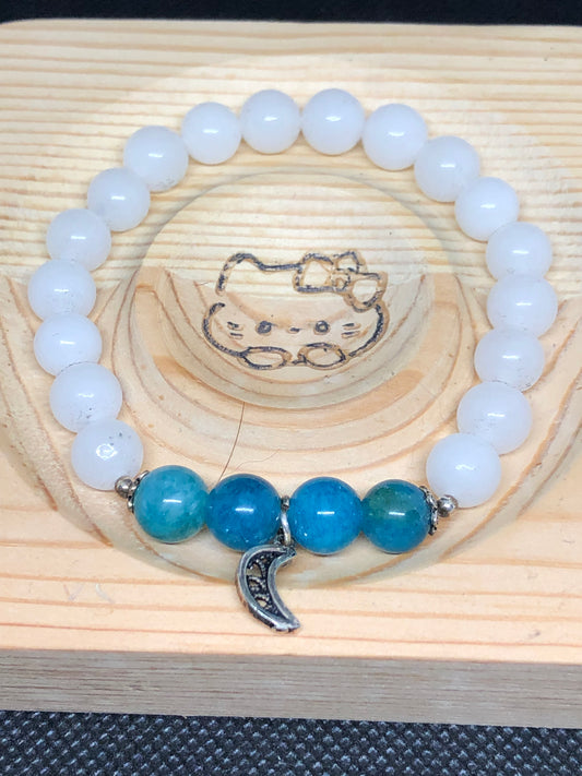Bracelet Quartz blanc , Apatite avec une breloque lune en argent 9.25
