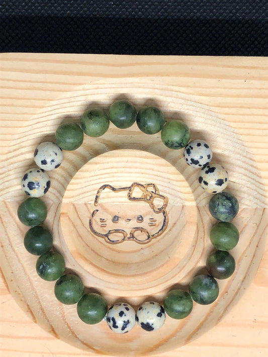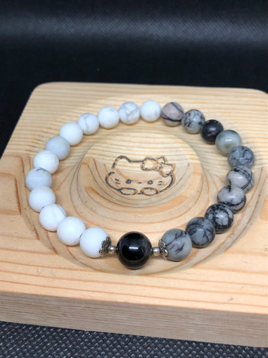 Bracelet Jaspe Picasso et Howlite serti d'une Tourmaline