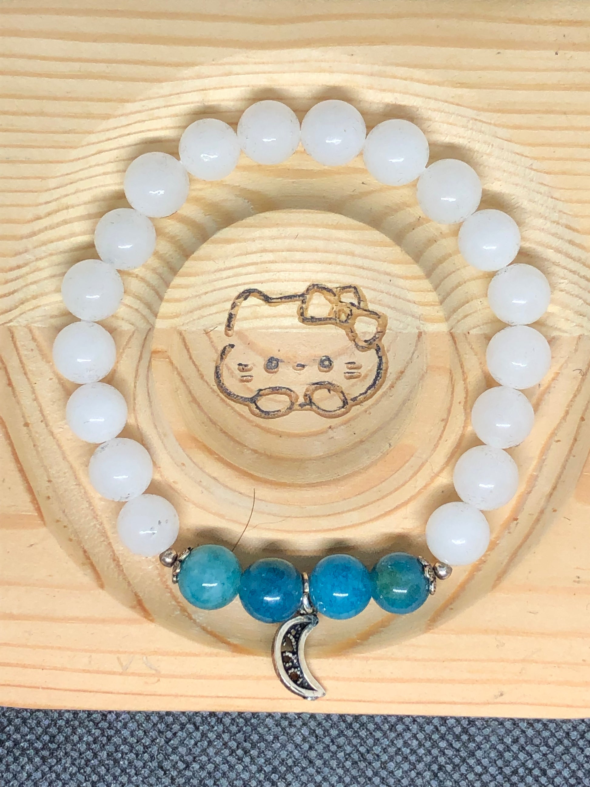 Bracelet Quartz blanc , Apatite avec une breloque lune en argent 9.25